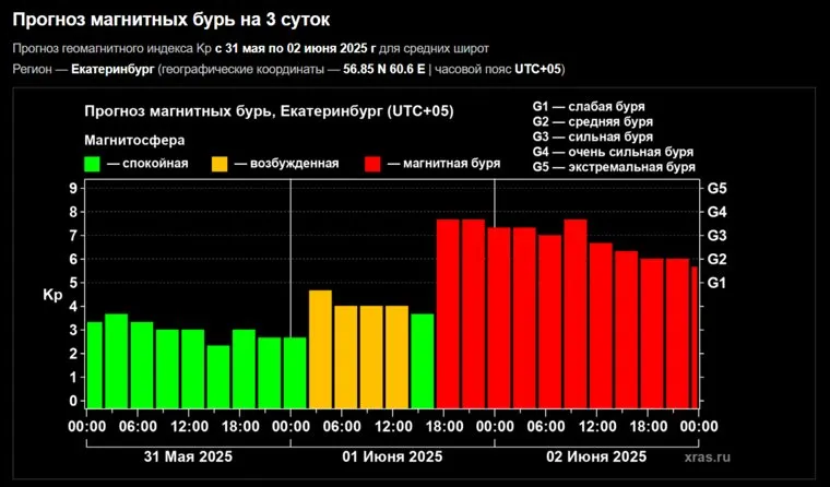 Сильнейшие магнитные бури обрушатся на свердловчан в первый день лета. Скрин