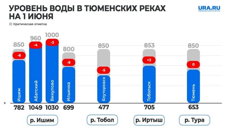 В остальных реках уровень воды снижается. В других районах Тюменской области произошли следующие изменения: