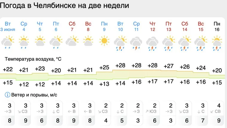 Челябинцам пообещали аномальную жару и молнии в первой половине июня. Скрин