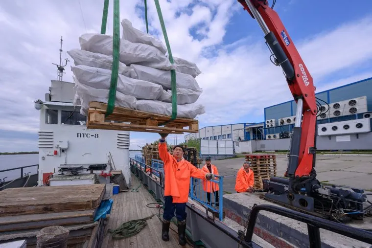 К производственному пирсу салехардского рыбокомбината доставили 25 тонн рыбы-сырца