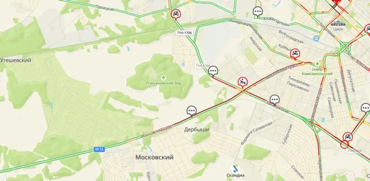 «Тюмень. Транспортный затор начинается от улицы Зои Космодемьянской и длится по Московскому тракту до поворота на поселок Московский. Длинна затора — 5 километров. Общее состояние пробок в Тюмени оценивается на шесть баллов», — отмечено на сервисе.