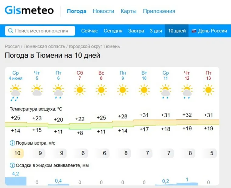 Тюмень ждет возвращение жары. Температура воздуха в течение 10 дней поднимется выше 30 градусов по шкале цельсия, прогнозирует метеорологический ресурс Gismeteo.