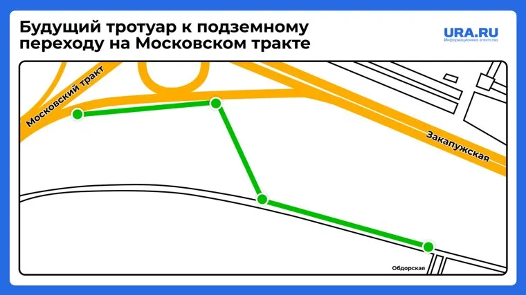 «Выполнение работ по устройству недостающего тротуара от улицы Уездной к подземному переходу на Московском тракте (развязка). Начальная цена: 15 500 000 рублей», — говорится в документации.