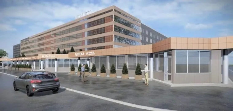 Фасад торгового павильона планируется выполнить в серо-золотисто-бежевых тонах