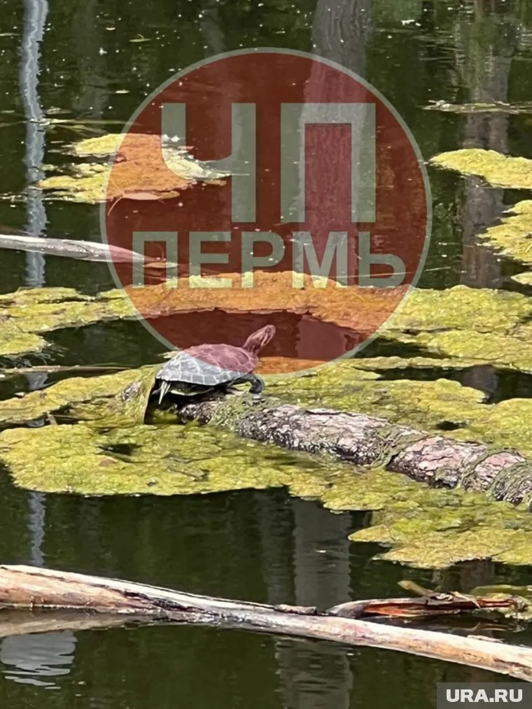 «Обращались 28 мая в ПермГорЛес с тем, что кто-то в очередной раз выкинул черепаху в пруд „Золотые пески“ на Парковом. Результата никакого. Фото 2 июня — черепаха так и живет в пруду», — говорится в посте.