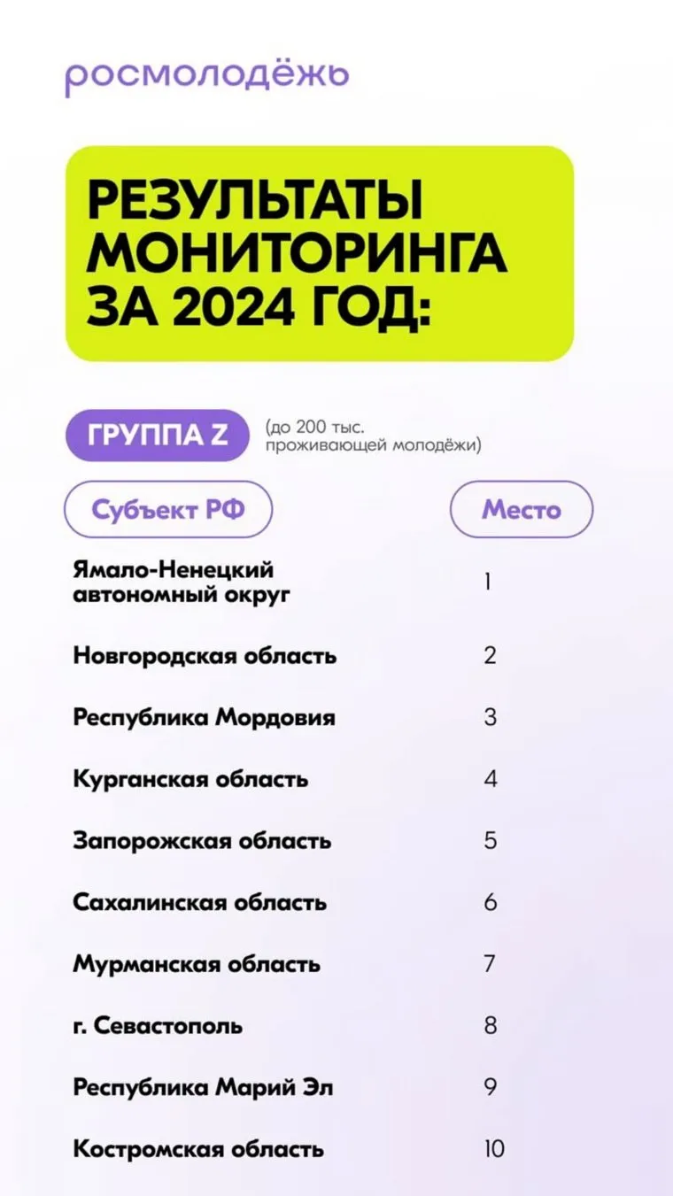 Курганская область вошла в Топ-5 регионов по работе с молодежью. Скрин