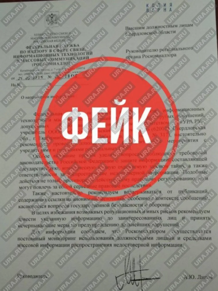 Под видом письма Роскомнадзора распространяли фейк об URA.RU