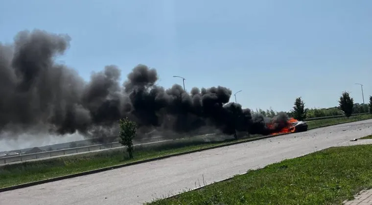 Автомобиль загорелся из-за прилета БПЛА по парковке