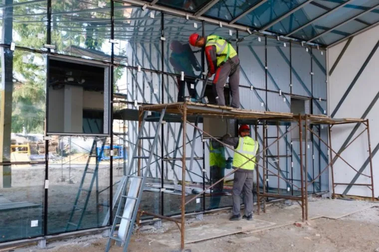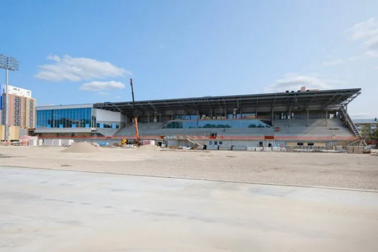 На стадионе «Юность» завершается монтаж витражного остекления