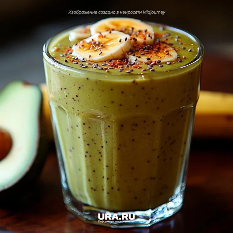 Попробуйте смузи и при необходимости добавьте еще меда или льда по вкусу. Смузи следует подавать сразу после приготовления в охлажденном виде. Напиток можно украсить ломтиком авокадо или банана для украшения.