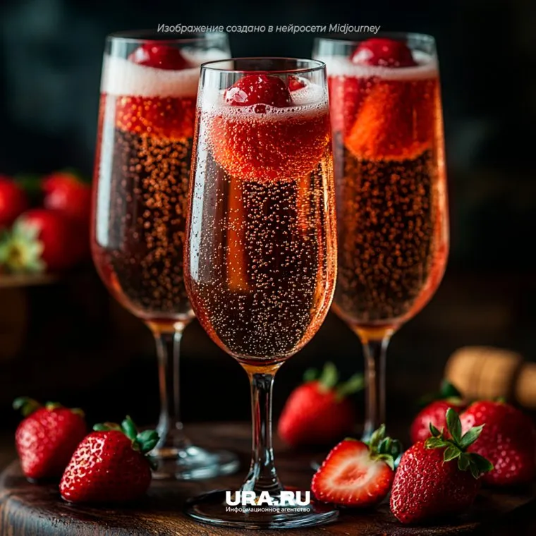 Этот освежающий коктейль идеально подходит для торжественных случаев и романтических вечеров. Сочетание сочной клубники с игристым вином создает неповторимый вкусовой букет, а легкая кислинка лимона придает напитку особую пикантность.