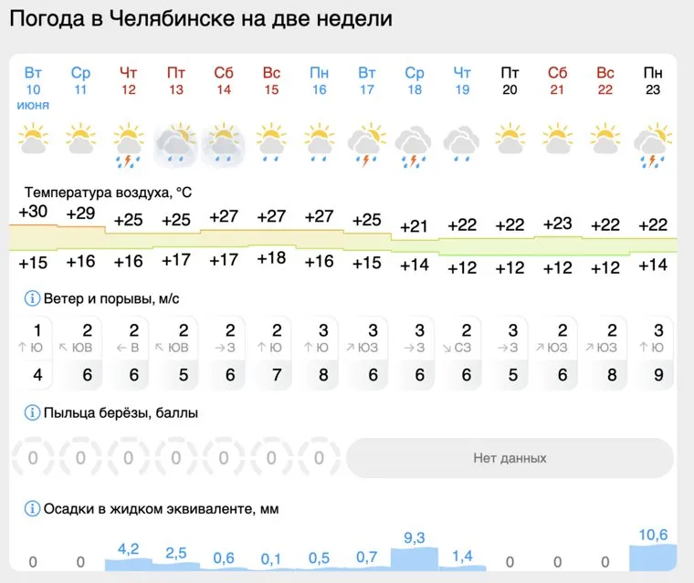 Фото: скрин с сайта «Гисметео» https://www.gismeteo.ru/weather-chelyabinsk-4565/2-weeks/
