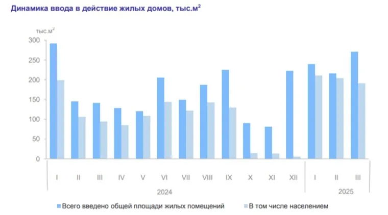 В январе – марте 2025 года по сравнению с январем – мартом 2024 года ввод в действие жилых домов вырос на 25,7%, в том числе построенных населением – на 51,5%