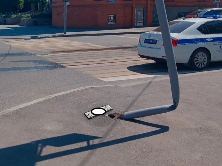 Курганский губернатор пошутил над водителем, потерявшим госномер у сбитого столба. Фото