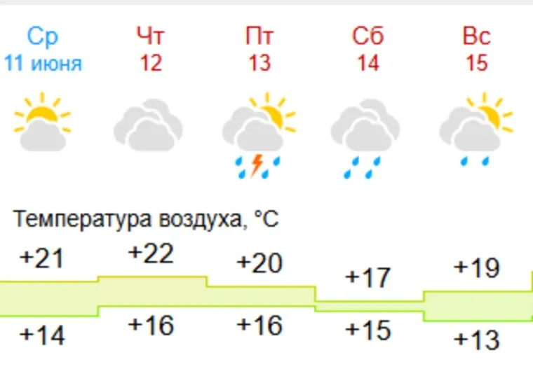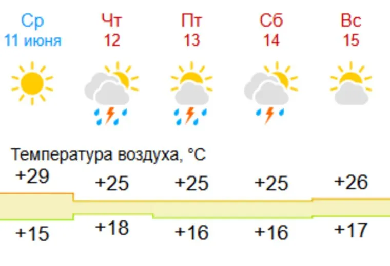 Погода в Казани с 11 по 15 июня
