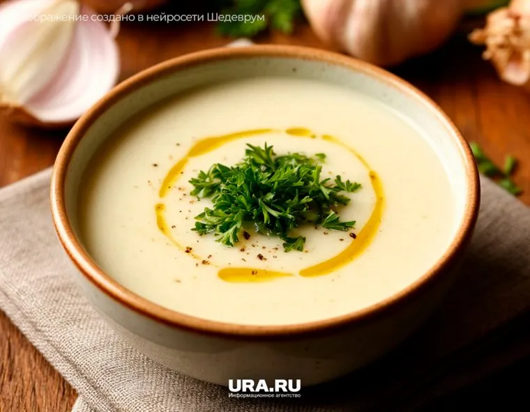 Этот суп подается с луком и трюфельным маслом