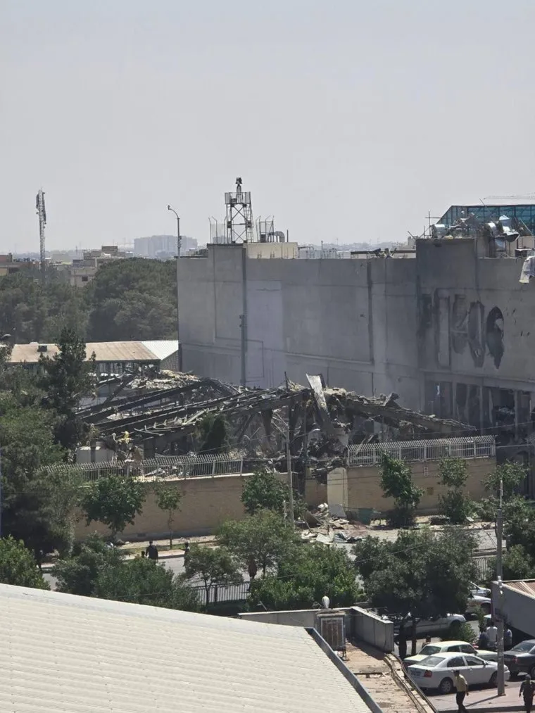 Вид на здание, поврежденное в результате авиаудара Ирана