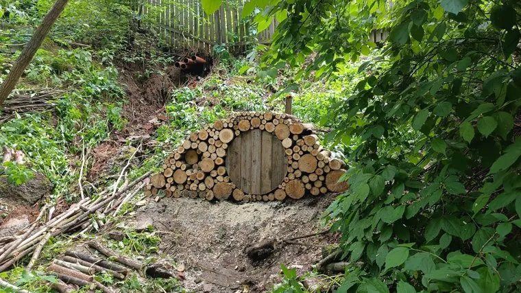 Отель для насекомых в виде домика хоббита собрали из поленьев