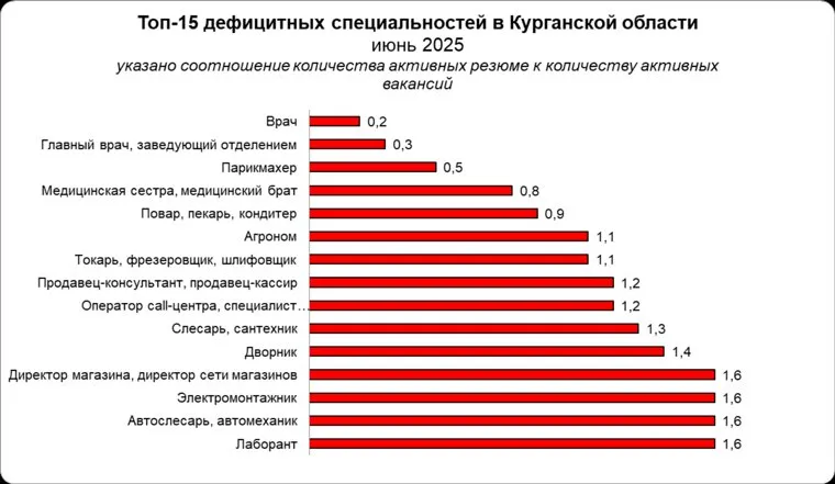 «Перечень дефицитных специальностей в 2025 году становится короче и ряд профессий уже выбыли из него. В список дефицитных профессий в Курганской области на данный момент входят 44 специальности, где на одну активную вакансию приходится менее четырех резюме потенциальных кандидатов. Интересно, что за год он сократился на 33% (с 66 специальностей в начале лета 2024 года)», — отмечают эксперты HeadHunter.