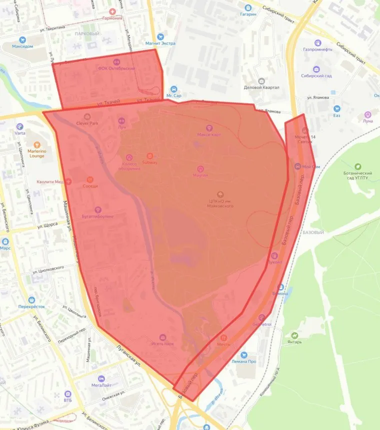 С 10:00 до 23:00 запрет распространится на кафе и магазины в самом парке Маяковского, на заведения Базового переулка (от улицы Яламова до Машинной). Также на магазины и кафе в границах улиц Восточной — Большакова — Луначарского — Ткачей.