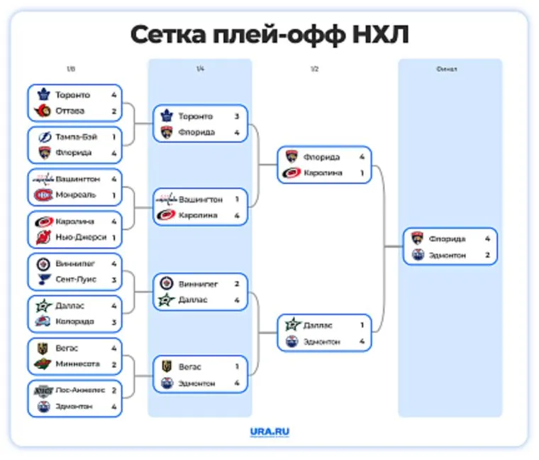 Хоккейный сезон 2024/2025 вошел в историю как период окончательного становления новой династии НХЛ — «Флорида Пантерз» подтвердила свой чемпионский статус, став обладателем Кубка Стэнли второй год подряд. В драматичной финальной серии «пантеры» одолели «Эдмонтон Ойлерз» со счетом 4-2, завершив противостояние убедительной победой в шестом матче на домашнем льду арены «Эмерант Банк». Подробнее о завершившимся сезоне НХЛ, его итогах и статистике — в материале URA.RU.