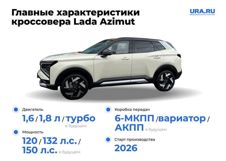 На Петербургском международном экономическом форум (ПМЭФ-2025), который стартовал 18 июня, компания АвтоВАЗ представила свой первый за почти 30 лет кроссовер Lada Azimut — о его комплектации ранее ходили различные слухи. Предполагается, что в дилерские салоны машина поступит через год. Вице-президент автомобилестроительной компании Евгений Шмелев заявил, что кроссовер построен на базовой платформе модели Vesta. Что известно о новой Lada Azimut, ее характеристиках, комплектации, дизайне и стоимости — в материале URA.RU.