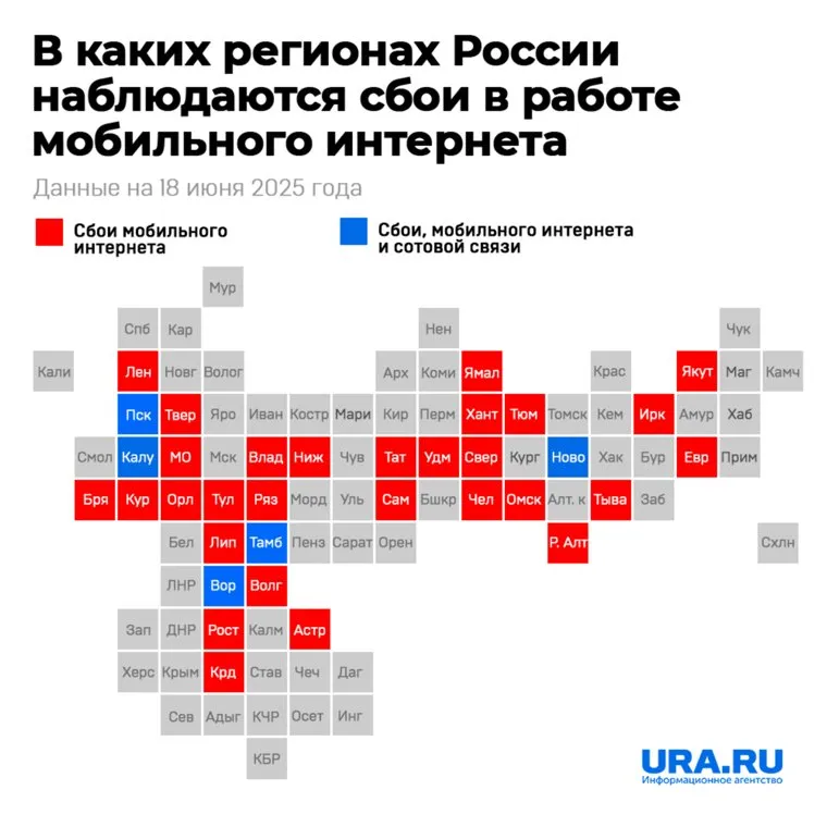 В 35 регионах России за последние сутки были введены ограничения на мобильный интернет. Об этом 18 июня сообщили представители региональных администраций и профильных ведомств. Ограничения затронули доступ к 3G и 4G сетям, однако в отдельных областях наблюдается восстановление связи.