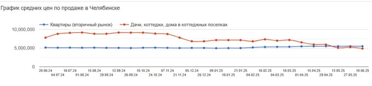 Средняя цена коттеджей в Челябинске - 4 870 000 рублей за объект