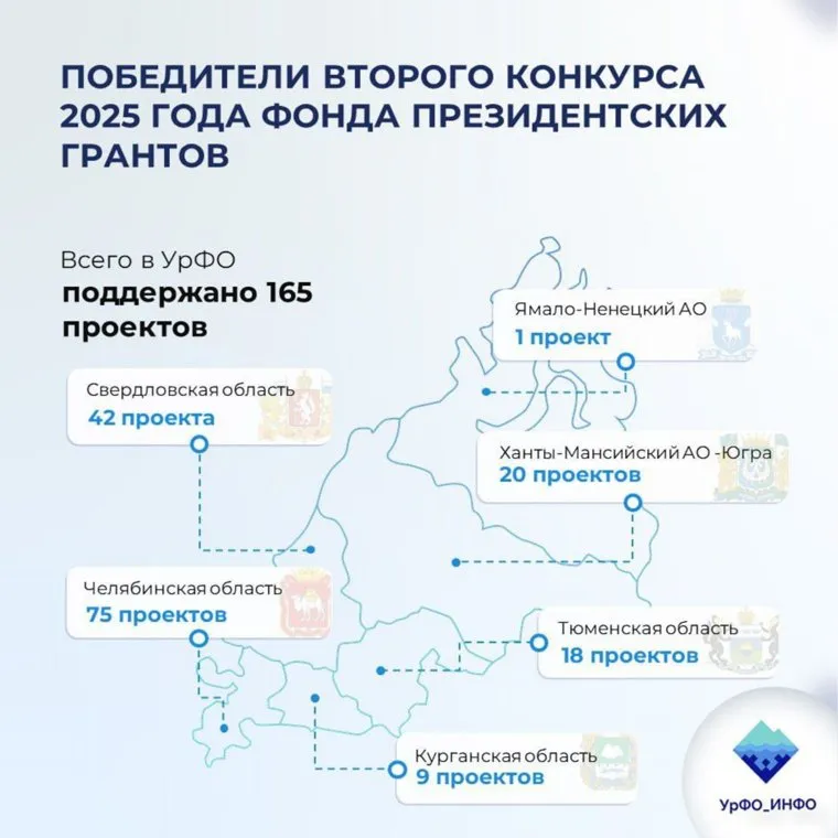 Фонд президентских грантов выделит 342 миллиона рублей на реализацию 165 проектов из Уральского федерального округа, которые стали победителями второго конкурса в 2025 году. Об этом сообщили в пресс-службе полпредства.