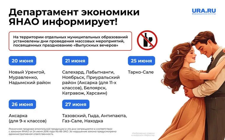 В дни проведения выпускных вечеров ограничена продажа алкоголя в ЯНАО. Инфографика