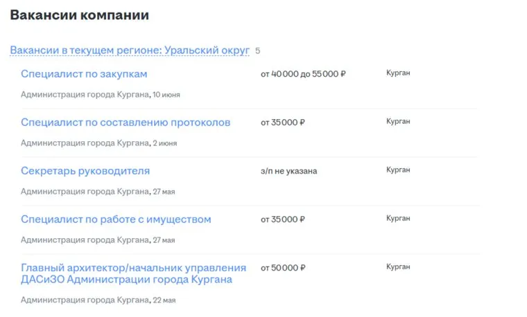 В администрации Кургана активно ищут сотрудников на важные должности. Как указано на сайтах с поиском работы, в мэрии открыты сразу несколько вакансий с заработной платой около 55 тысяч рублей.