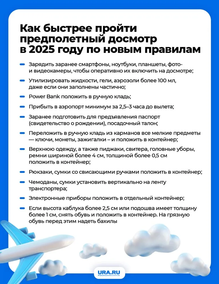 В пресс-службе аэропорта Кольцово корреспонденту URA.RU объяснили, что дополнительные меры при досмотре введены во всех воздушных гаванях страны с 1 марта 2025 года в соответствии с приказом Минтранса РФ от 4 февраля 2025 года. Связано это с обеспечением транспортной безопасности.