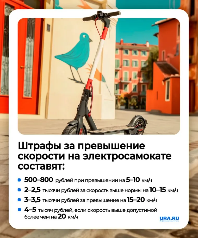 За превышение скорости на электросамокате или велосипеде штрафы составят: