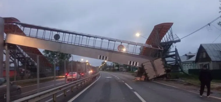В ночь на 21 июня на трассе М-7 «Волга» во Владимирской области частично обрушился надземный пешеходный переход после столкновения автомобиля с его опорой. Об этом сообщает управление МВД по региону.