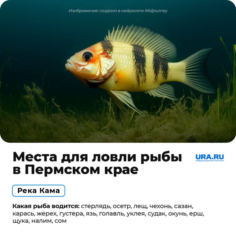 Река Кама считается одной из крупнейших водных артерий Европы, ее длина превышает 1800 километров. Благодаря особенностям рельефа и масштабам Камы, здесь обитает практически весь спектр видов рыб, характерных для Пермского края. В Каме встречаются следующие представители ихтиофауны: стерлядь, осетр,