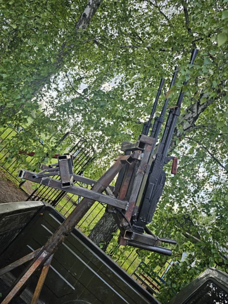 «В целом устройство было сварено своими силами... Массовый налет был где-то в течение часа», — отметил Амур в беседе с агентством. Его самодельное зенитное орудие выглядит так: спаренные пулеметы, установленные на конструкцию из полых металлических труб, которые, в свою очередь, прикреплены к треноге из металлической трубы. Зенитка была размещена в кузове пикапа.