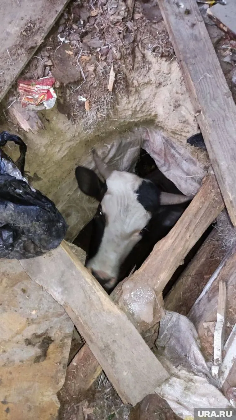 Бык в Тугулыме 10 дней просидел под землей. Фото