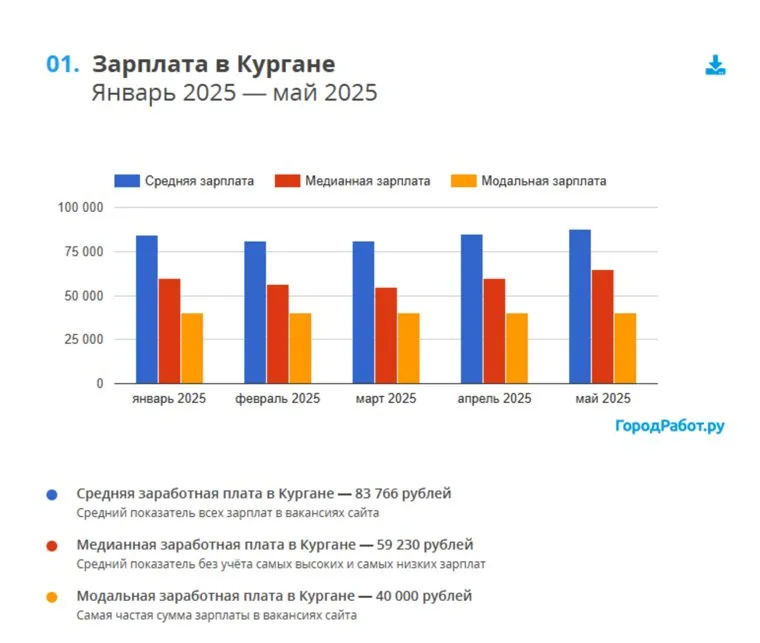 В мае 2025 года средняя заработная плата в Кургане составила 87 982 рубля. Это на 3,5% больше, чем в апреле. Об этом сообщают аналитики портала с вакансиями.