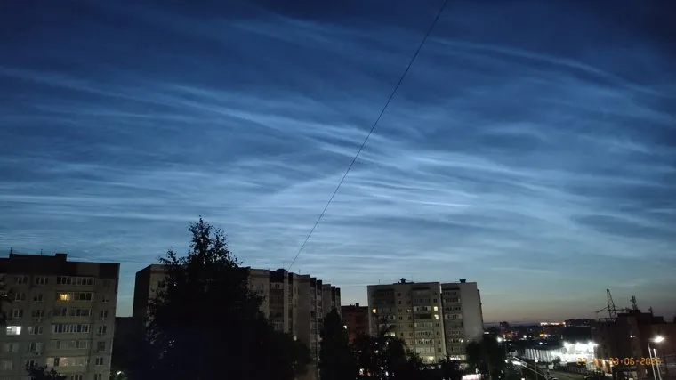 Жители Тюмени заметили необычное атмосферное явление — серебристые облака. Фотографиями горожане поделились в группе обсерватория «Старая башня» в соцсети «ВКонтакте».