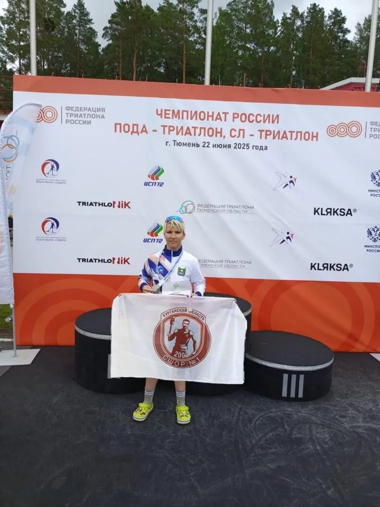 Спортсменка курганской СШОР №1 Евгения Королева завоевала серебряную медаль на чемпионате России по триатлону в дисциплине ПОДА (спорт лиц с поражением опорно-двигательного аппарата). Соревнования среди мужчин и женщин проходили с 21 по 22 июня на территории центра зимних видов спорта «Жемчужина России» в Тюмени. Об этом сообщает управление спорта по Курганской области в своем tg-канале.