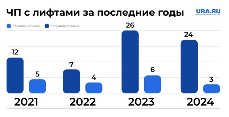 В 2024 году в ЧП с лифтами пострадали 24 человека