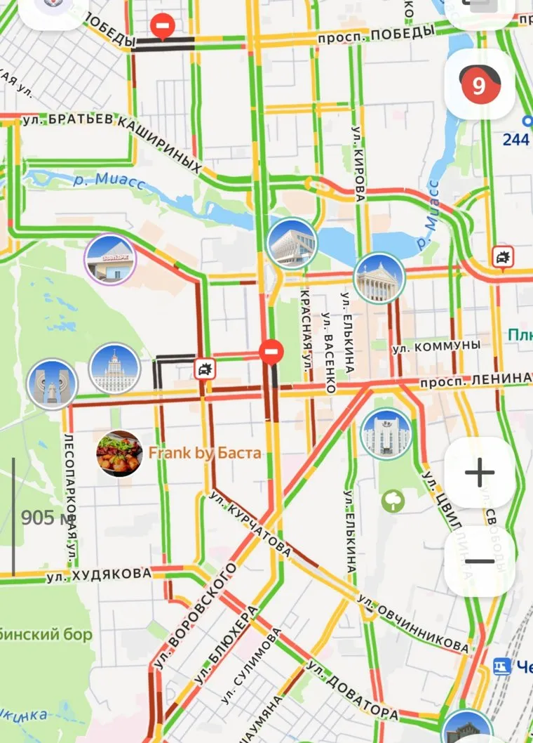 Челябинск вечером в пятницу встал в 9-балльную пробку из-за перекрытого движения в центре города для проведения «Атомного выпускного-2025» и ливня. Об этом URA.RU сообщили читатели.
