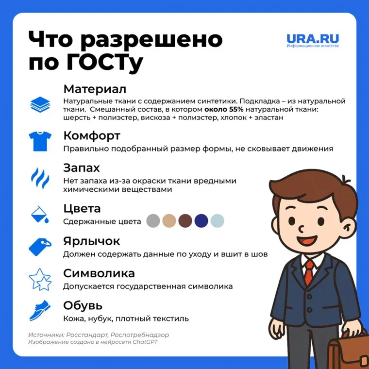 Форма должна иметь светский характер и соответствовать эстетическим нормам. Кроме того, допускается наличие государственной символики. Как выбрать удобный, эстетичный и патриотичный костюм для ребенка и на что стоит обратить внимание — в материале URA.RU.