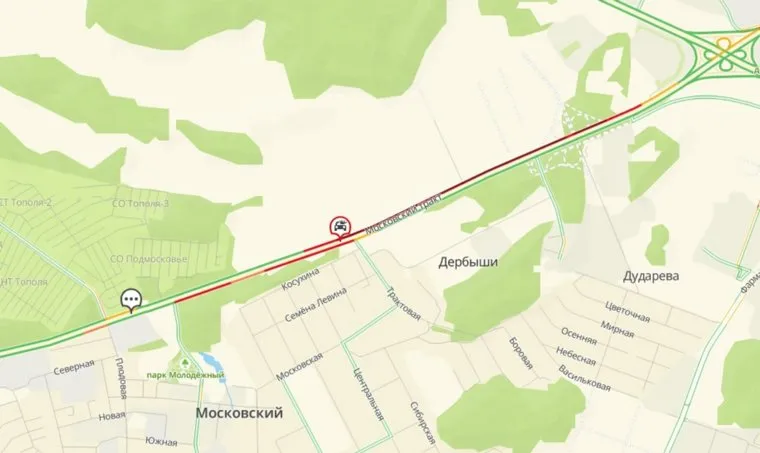 «Тюмень, Московский тракт. Пробка в 2,3 километра со стороны города в направлении поселка Московский», — указано на карте 2GIS.
