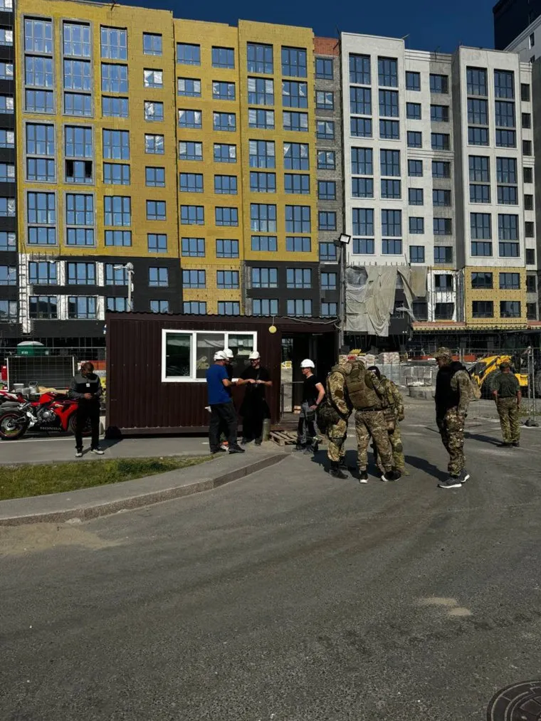 «В ЖК „Маэстро“ на пропускном пункте люди в камуфляже проверяют документы. У строителей», — указано в публикации.