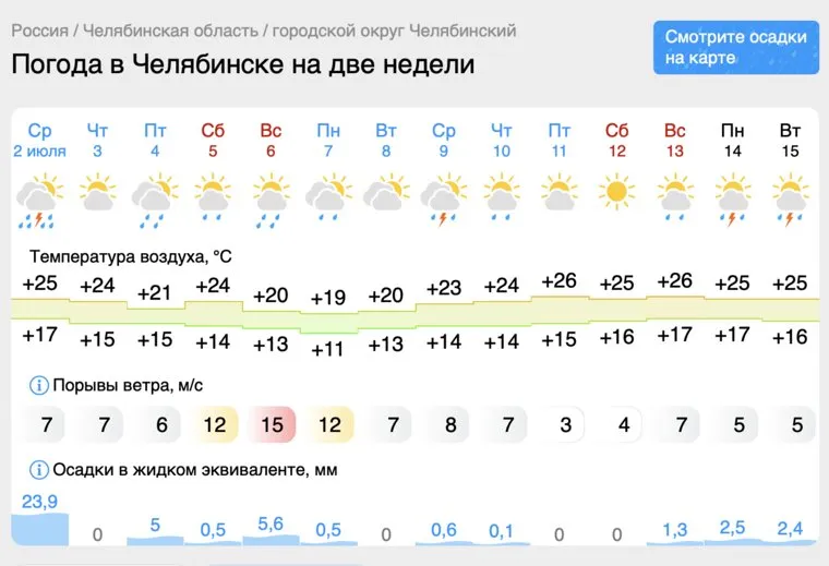 Фото: скрин сайта «Гисметео», https://www.gismeteo.ru/weather-chelyabinsk-4565/2-weeks/