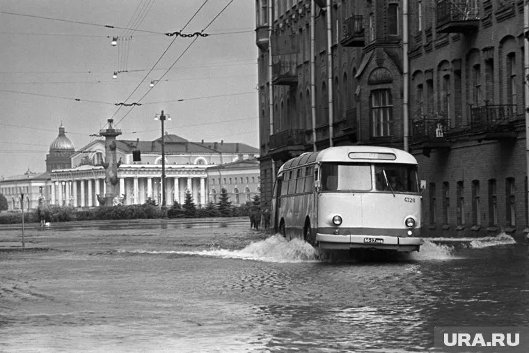 В 1975 году в Ленинграде наводнение парализовало работу транспорта