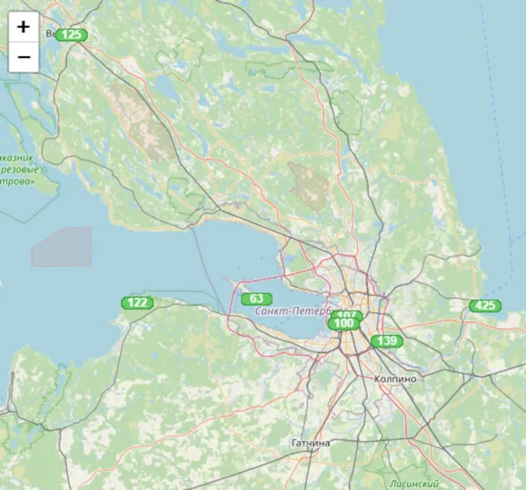 Карта фактического уровня воды в Финском заливе и реке Неве