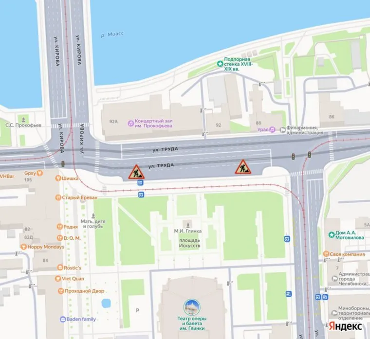 В Челябинске ограничат движение около Театра оперы и балета до конца июля. Схема