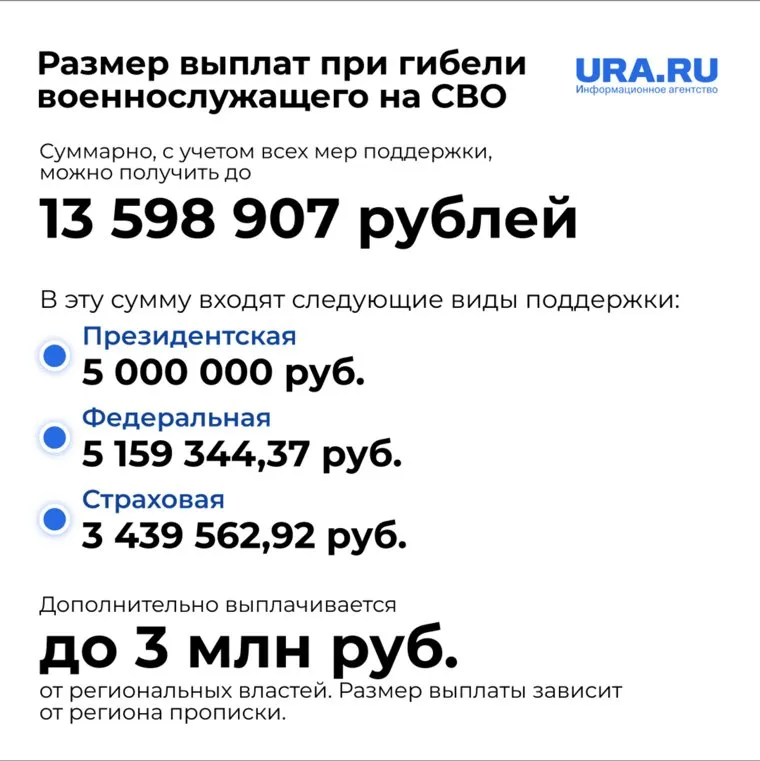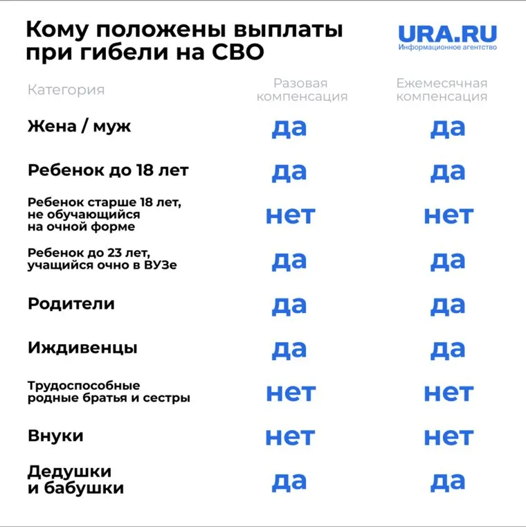 Полный список выплат, положенных для родственников погибших на СВО. Инфографика